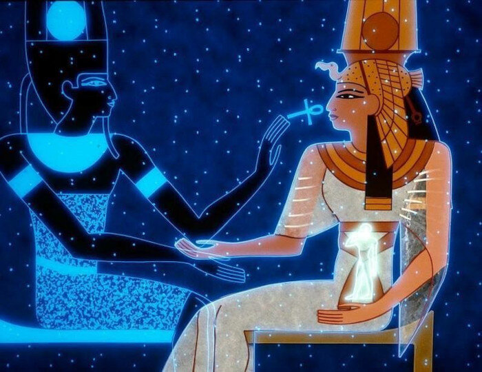 В египетском папирусе говорится, что спутник Исиды – «Господь в совершенном чёрном».. Спутник Исиды Осирис «тёмный бог».