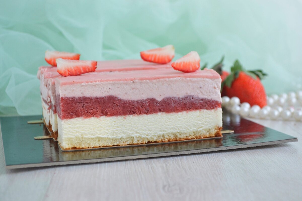 4.Уберите заготовку в холодильник на несколько часов. Затем нарежьте порционно на 8-10 пирожных.
