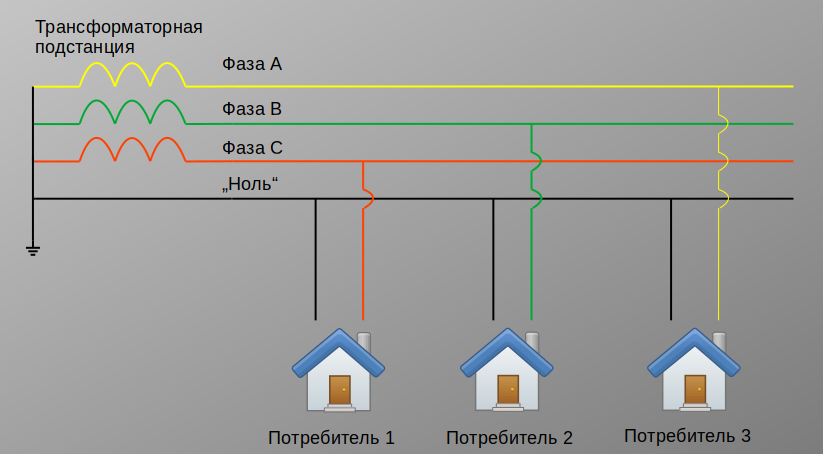 Здравствуйте, уважаемые читатели моего канала. Хотел сегодня поговорить о петле фаза-ноль. Дать представление, что это и для чего. В основном данной петлей пользуются энергетики, но ее измерение дает хорошее понимание о работе защитных устройств, таких как автоматические выключатели, и о величине тока в сети. В одной из предыдущих статей мы рассматривали простейшую схему электроснабжения потребителей, указанную на рисунке выше. Контур протекания тока будет следующим. Электрический ток из трансформатора на ближайшей подстанции выходит из фазного проводника, проходит через коммутационные аппараты на подстанции, проходит по линии, входит в дом, проходит через нагрузку, выходит из дома и возвращается в трансформатор по нулевому проводнику. Энергетики при выборе аппаратов защиты для своих сетей поступают следующим образом. Находят самую дальнюю точку линии от трансформаторной подстанции (ввод в дом самого дальнего потребителя на линии) и рассчитывают или измеряют сопротивление петли фаза-н