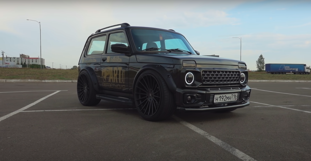 Здравствуй, друг мой! Новая Нива Бронто с салона в топовой комплектации стоит 800 тысяч рублей. И это без допов. А там коврики, антикор и получается все 900... Но хозяин этой нивы решил сделать немного иначе. Купил подержанную ниву, а остальную сумму вложил в доработку своего автомобиля. А теперь скажите мне: разве эта машина не лучше той, которую выпускают с завода? Конечно же он делал её под себя, и не каждому она понравится. Но вложив такую сумму, думаю, каждый сможет доработать нивасик под себя. Теперь подробнее о данном экземпляре. Внешний вид. Машина полностью перекрашена в тёмно-тёмно зелёный цвет, издалека кажется совсем чёрной. Установлены 22-е диски Hamman! Реплика конечно. Для того, чтобы поставить такие диски, пришлось выпилить добрую половину арок, а сверху закрыть это расширениями. Но оно того стоило! Также на машину поставили пневму. Поэтому можно стильно кататься по городу на занижении. Но если вдруг тебе захочется съездить на рыбалку, то это тоже вполне возможно. С так