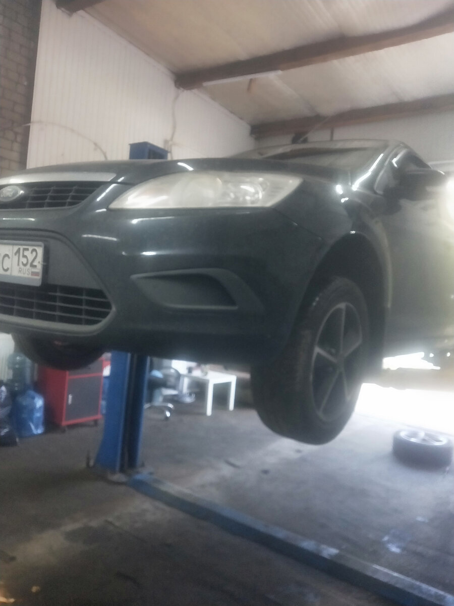 Форд фокус (замена тормозных дисков,колодк,стоек стабилизатора.ремонт ручника.)