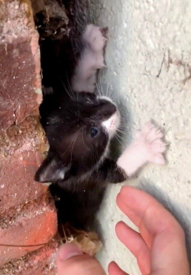 Когда одним очень холодным днем парень по имени Дрю занимался загрузкой своего автомобиля, он обратил внимание на еле слышный писк. Как оказалось, его издавал маленький котенок, застрявший между двумя кирпичными стенами. При виде незнакомого человека кроха сильно напугался и стал громче издавать звуки. Парень аккуратно достал животное из западни и сразу заметил, что у того что-то не так с правым глазом. Для начала, юноша решил отвезти бедняжку в службу Alley Cat Rescue, занимающуюся спасением кошек. Там молодую кошечку осмотрел ветеринар, где установил, что ей примерно три месяца от роду. Она оказалась полностью здоровой, если не считать больного глаза. Юноша забрал кошечку с собой домой, где она сразу уснула у него на руках после перенесенных событий. На следующее утро Дрю снова повез ее в тот же центр. Уже там специалисты назначили необходимое лечение и взяли котенка на попечение, пока он окончательно не восстановится. Парень большой молодец, что не прошел мимо чужого несчастья! Сейч