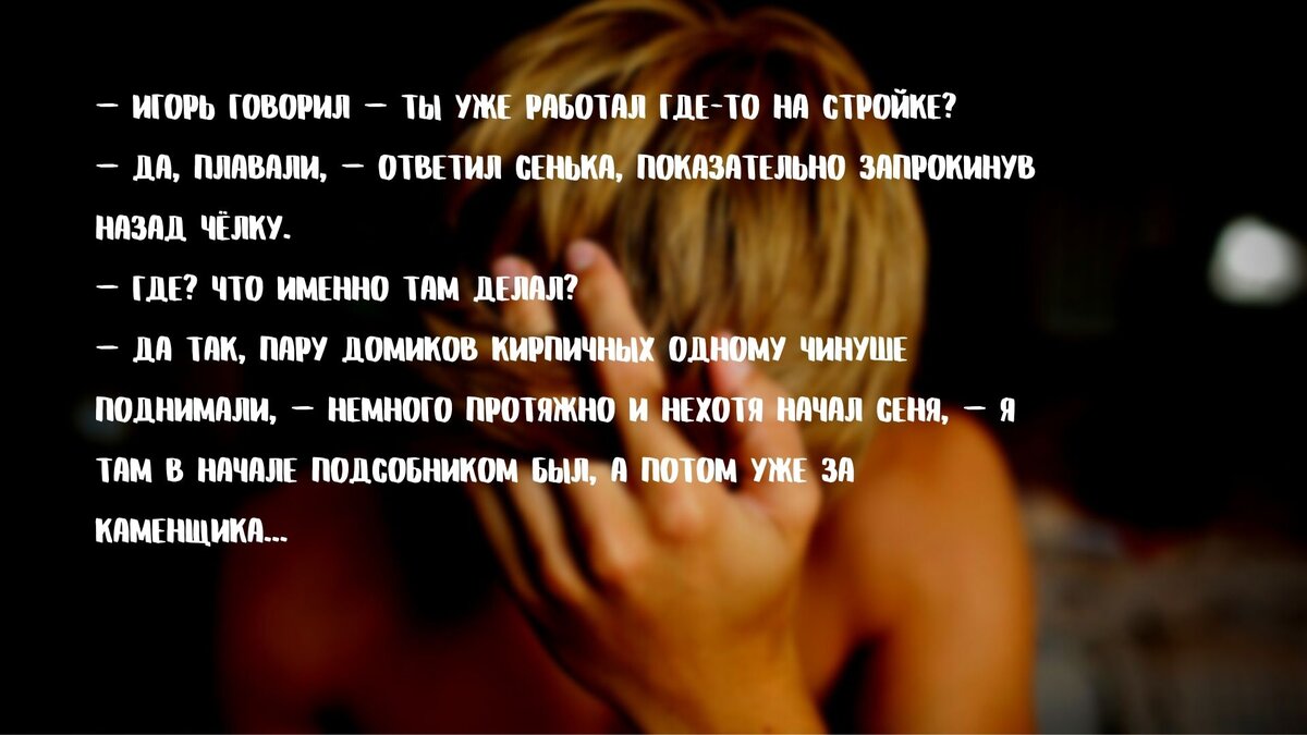 — Да так, пару домиков кирпичных одному чиновнику поднимали, — немного протяжно и нехотя начал Сеня, — я там в начале подсобником был, а потом уже за каменщика.