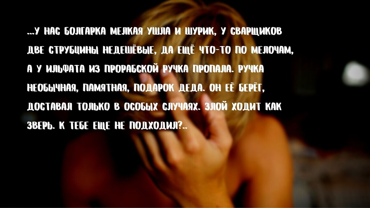 — Не то, чтоб прям много, но дело это, сам понимаешь, просто так оставлять нельзя. У нас болгарка мелкая ушла и шурик, у сварщиков две струбцины недешёвые, да ещё что-то по мелочам, а у Ильфата из прорабской ручка пропала. Ручка необычная, памятная, подарок деда. Он её берёг, доставал только в особых случаях. Злой ходит как зверь. К каждому уже подошёл спросил. К тебе не походил?