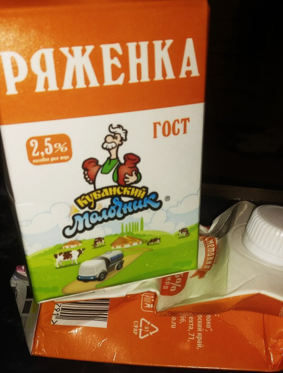 Так как кишки 45 летнего индивида иногда требуют отдохновения от экспериментов, решил отобедать скромными 900 граммами ряженки. В сети Магнит у дома с выбором кидосмолочки, ну, так себе - море кефира и всего три варианта ряженки: Агрокомплекс в плёнке ( всегда один и тот же неприятный привкус у всей молочки этого производителя) и две в коробочке с крышечкой - Сметанин и Весёлый молочник. обе пачки 450 граммов, на весах сметанин чуть тяжелее, однако выливая в кружку оказалось, что ряженки в молочнике больше. Ладно, теперь по порядку. Первым я открыл сметанина, так как всегда предпочитаю сначала схавать невкусное, чтобы общее впечатление от трапезы осталось хорошим. Сметанин: жижа жидкая, на вкус совсем не ряженка - некий молочный продукт без выраженного вкуса, пришлось добавить сахара, лишь тогда чуть чуть раскрылся вкус и появилось некое послевкусие ряженковое. Мой внутренний еврей прям пожалел, что взял Сметанина Далее, чтобы смыть позор предыдущей молочной продукции, я откупо