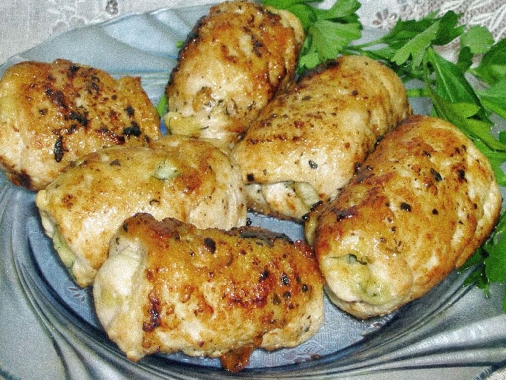 5. Куриные рулетики с соленым огурцом и сыром готовы.