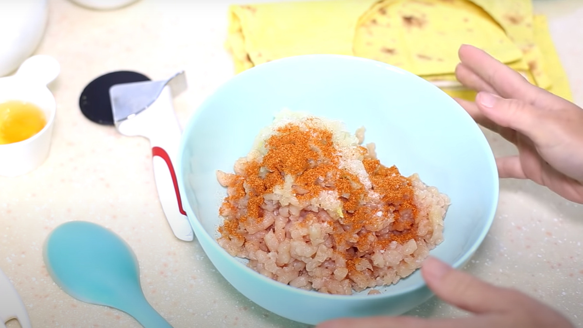 Всем привет сегодня готовлю чебуреки из лаваша. Они получаются очень вкусными и готовятся очень быстро, вам не придется стоять 3 часа у плиты потому что они готовятся в духовке. Если вам интересно узнать как они готовятся оставайтесь со мной. Для приготовления нам понадобится: Приступим к приготовлению Беру фарш, он у меня домашний, готовлю я его сама из филе куриной грудки потому, что я не люблю чтобы фарш был слишком жирный. Можно также использовать филе бедра курицы. При приготовлении фарша я его перекручиваю через мясорубку вместе с луком. В готовый фарш я добавляю соль по вкусу и приправу для курицы. Также можете добавить черный или красный перец. Всё это перемешиваем и начинка для моих чебуреков готова. Отставляем её пока в сторону. Теперь в качестве теста я сегодня буду использовать лаваш. Его нужно нарезать в форме чебуреков. Беру заготовку и смазываю белком яйца по краям лаваша. Это нужно для того чтобы лаваш хорошо лепился. Выкладываю на половину лаваша фарш примерно 1 столов