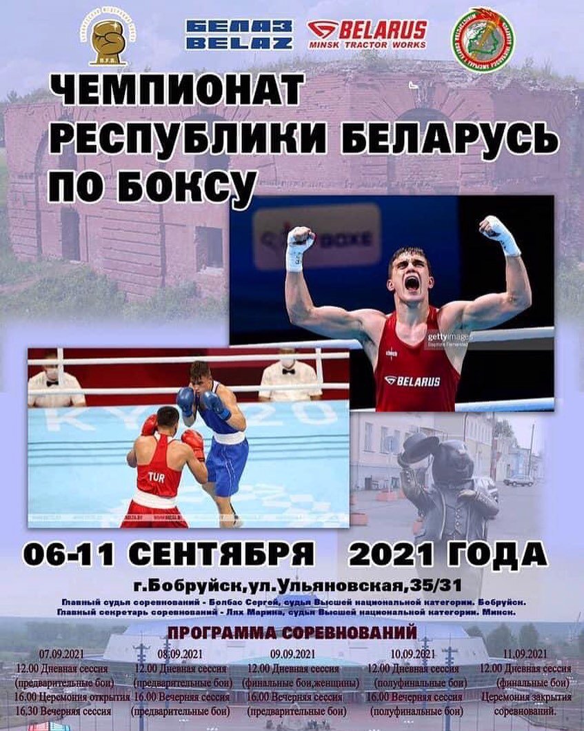 📍 Выступления проходят в г. Бобруйске и закончатся 11 сентября. ❗️Чемпионат проходит по новым весовым категориям: 🙋🏻♂️ Мужчины: 48 кг, 51 кг, 54 кг, 57 кг, 60 кг, 63,5 кг, 67 кг, 71 кг, 75 кг, 80 кг, 86 кг, 92 кг, +92 кг. 🙋🏻♀️ Женщины: 48 кг, 50 кг, 52 кг, 54 кг, 57 кг, 60 кг, 63 кг, 66 кг, 70 кг, 75 кг, 81 кг, +81 кг. ✨ Расписание на ближайшие дни чемпионата: ✔️ 7 сентября 08:00-09:00 - взвешивание участников. 12:00-15:00 - дневная сессия. 16:00-16:30 - церемония открытия. 16:30-19:30 - вечерняя сессия. ✔️ 8 сентября 08:00-09:00 - взвешивание участников. 12:00-15:00 - дневная сессия. 16:00-19:00 - вечерняя сессия. 🔎 Полуфинальные выступления ожидаются 10 сентября, а 11 сентября пройдут финальные поединки чемпионата. 📸 БФБ. #boxingbelarus #boxingteambelarus #boxingteamby #болеемзанаших #boxboy #boxgirl #mstby
