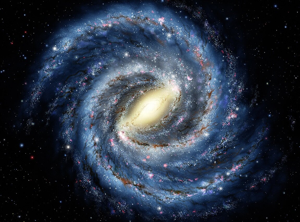 Млечный Путь — это спиральная галактика, а значит, она состоит из диска звезд, газа и пыли со спиральными рукавами. Сначала ученые считали, что этот диск абсолютно плоский, но уже несколько десятилетий известно, что самая внешняя его часть искривляется: в одном направлении она закручивается вверх, а в противоположном — вниз. Внешние части диска искривлены, а их вращение определяет ось, перпендикулярная плоскостям искривления.