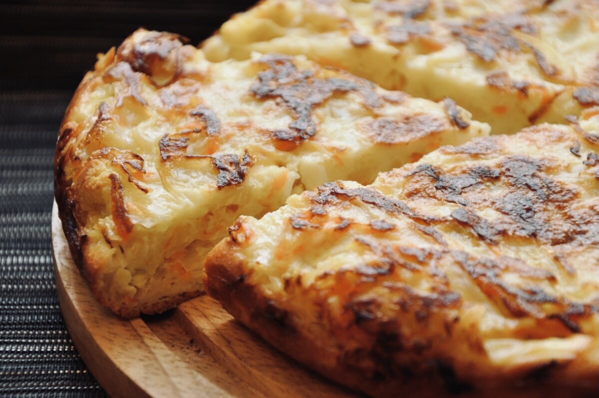 Выложите ровным слоем капусту, сверху залейте остальным тестом.