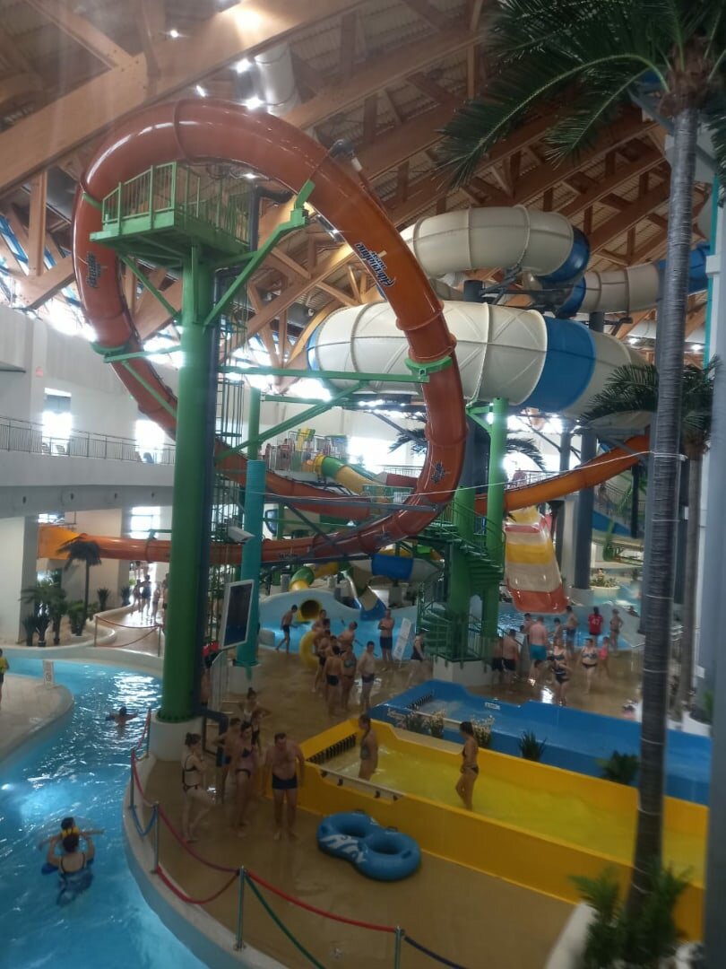 Для любого привередливого посетителя найдётся развлечение. Хочешь просто плавай, хочешь в джакузи валяйся, или на волнах болтайся. Кто-то может баню или сауну любит , хамам, их тут несколько штук. Ну, а уж горки то все любят, их аж пятнадцать штук. На любой вкус. Я как-то однажды съехала с горки , да с моим-то весом ,такую скорость набрала, столько брызг наделала, и проехала дальше всех, волну большую создав. Так теперь воздерживаюсь при большом скоплении народа кататься. Конечно, есть дамы и крупнее меня, но все равно, неудобно как-то. Так что я просто плаваю. Пусть на горках молодежь катается.