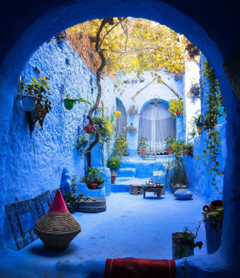 Лабиринты старого города сплетаются в одной ультрамариновой паутине, изредка вспыхивая апельсинами на цветущих деревьях. Петухи, поющие по утрам. Запах выпечки. Старики в национальных халатах с остроконечным капюшоном. Уличные музыканты на центральной площади. Кошки, тянущие арабские глаза к солнцу, и двери, соревнующиеся друг с другом в разнообразии цветов и причудливости форм.. Шефшауэн, также известный как Шавен, знаменит тем, что подавляющее большинство стен зданий в нём окрашены в различные оттенки синего и голубого. Его называют "голубой жемчужиной" или просто "синим городом".