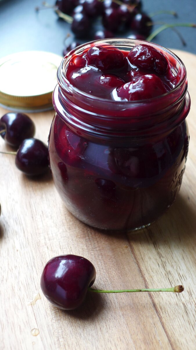 Пришла осень, а вместе с нею время забивать полки подвала всевозможными вкусными домашними заготовками. Летний урожай фруктов, ягод и овощей практично упакованный в разнообразные баночки и скляночки парадно разместится в самом важном месте моего дома, в подвале. Семья украдкой будет таскать всяческие вкусности наверх, ведь свежеиспеченный хлеб, густо намазанный черешневым вареньем, морозным воскресным утром намного вкуснее, если есть его под мохнатым пледом. Помните тот пяти килограммовый ящик черешни, в этой маленькой баночке лишь небольшая часть того, что от него осталось. Все-таки мои кулинарные эксперементы не прошли даром, а мое семейство по достоинству оценило трудозатраты и умяло пироги с характерным свистом. Я с удовольствием поделюсь с вами этим рецептом начинки, он замечательный, довольно несложный, подойдет для любого теста, и по нему начинку приготовить можно не только из черешни, но из вишни тоже.