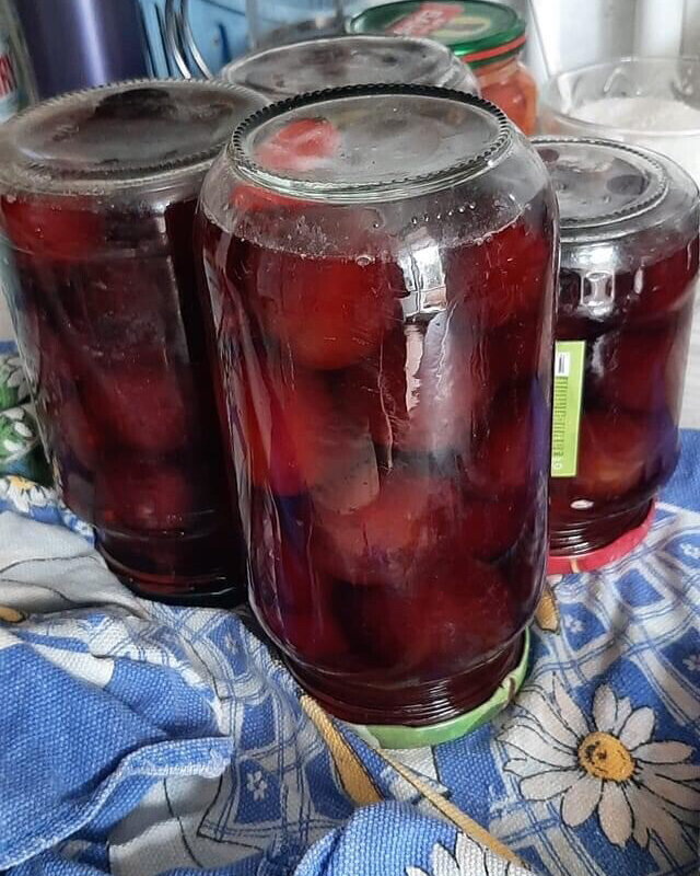Хочу подсказать как сделать не особо хлопотно весьма пикантную закуску, которая станет «изюминкой» любого фуршета или просто украсит зимнее застолье. На 2 кг слив берём: 1.8 л воды, 250 гр. сахара, 2 ст.л. соли с горкой, 125 мл уксуса (использовал яблочный домашнего изготовления), 12 бутончиков гвоздики, положил красный перец, поделил стручок на 4 части и в каждую баночку часть положил, но можно горошком, я люблю остренькое, корица на кончике ножа. Сливы, перец, гвоздику разложил в подготовленные банки, залил горячей водой, когда вода остыла, вылил её в кастрюлю и добавил все ингредиенты, кроме уксуса, когда вода закипит - выключить и добавить уксус, все перемешать и горячим маринадом залить сливы, закатать в банки. Фсё! Можно ещё чеснок добавить. Некоторые чеснок вместо косточек вкладывают, но не я. #слива_маринованная #кулинарный рецепт