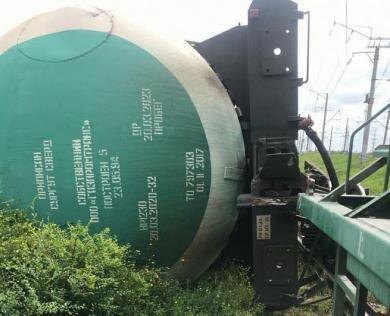 В результате столкновения погибших и пострадавших нет, допущен сход 5 цистерн с топливом и 5 вагонов во втором поезде.