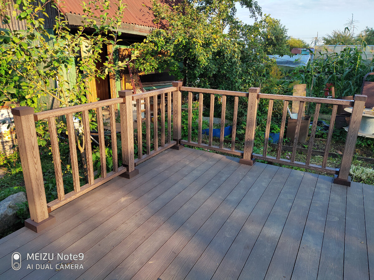 Декоративное ограждение ДПК. Установка на террасу. Доброго дня! Продолжаю описание личного опыта по монтажу декоративных ограждений из ДПК производства Холцхоф на террасу. Для начала посчитал количество коробок и дополнительных элементов (закладная для столба,опорный столб,верхняя крышка и нижняя юбка).Нужно учесть что в собранном виде секция ограждения из ДПК будет иметь размер 1,4 м по нижней части. Комплектация ограждения указана на коробке и в описание-здесь! Далее выравниваем торцы террасной доски по краю террасы. Размечаем, где на периле дпк будут крепится стаканы для расположения балюстры. И закрепляем крепление под балюстру. Устанавливаем закладную и начальный столб ограждения . Крепим держатель перила к столбу ограждения. Далее собираем секцию из перил и балясин. Крепим конечную закладную, столб ограждения .Заводим собранную секцию между двумя столбами ДПК. Устанавливаем секцию! Буду рад,если статья была ,Вам,полезна. Больше о доске ДПК и декоративных ограждения можно у