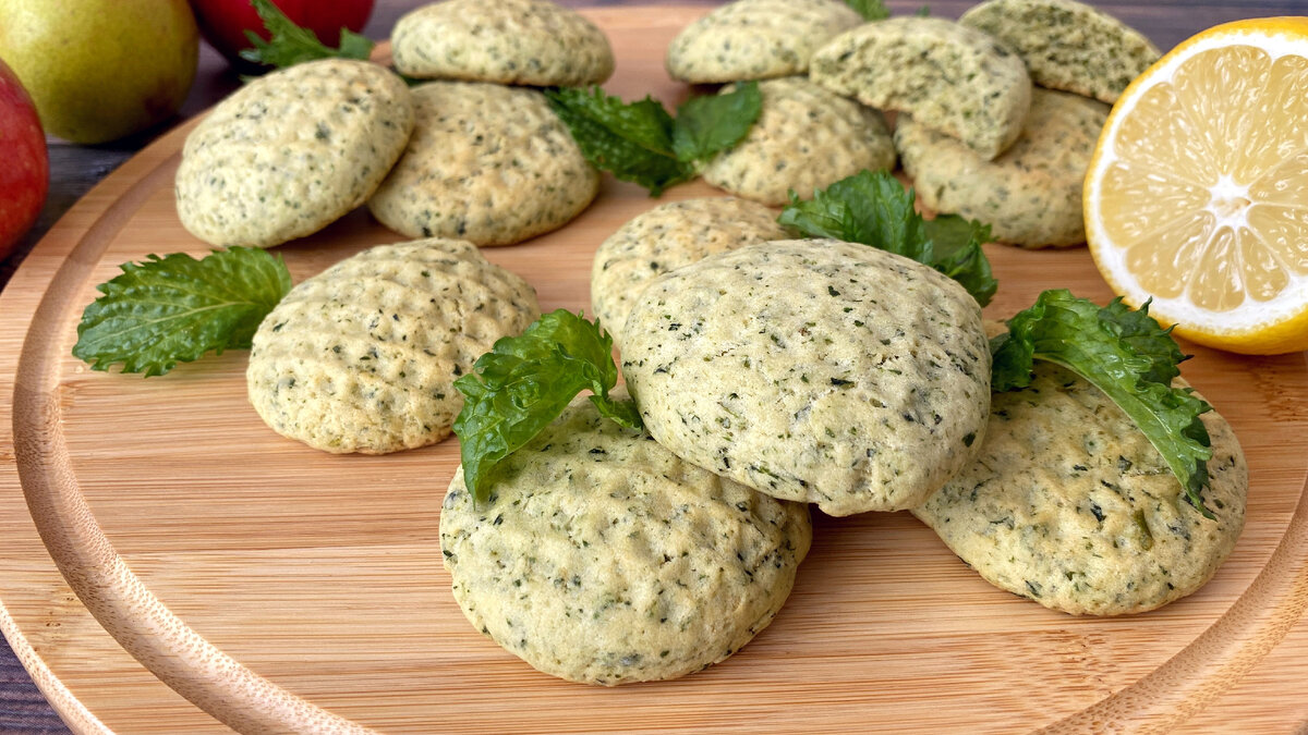 Хочу поделиться рецептом вкусного мятного печенья. Оно готовится на основе песочного теста, получается очень нежным, ароматным и станет отличным дополнением к чаю или кофе. Для приготовления 15 печенек нам понадобятся: К вымытым и подсушенным листьям мяты добавляем сахар. И с помощью погружного блендера превращаем листья в мятную пасту. В чаше взбиваем яйцо с растопленным сливочным маслом и ванилином. Затем добавляем измельченную мяту и все перемешиваем. Просеиваем муку, добавляем разрыхлитель. Замешиваем мягкое, не липнущее к рукам, тесто. Далее из теста формируем небольшие шарики и каждый шарик нужно слегка приплюснуть. С помощью кухонного молотка на поверхность печенья можно нанести узор. Выпекаем печенье в разогретой до 180 градусов духовке в течение 20-25 минут. Не пересушите печенье, оно должно остаться мягким. Печенье получается оливкового цвета, очень ароматное, с неповторимым вкусом. Сохраняйте рецепт и попробуйте приготовить!