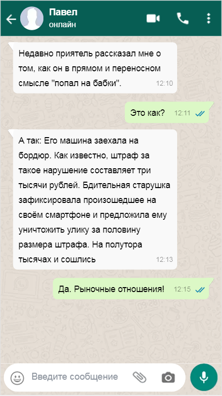 Раньше, чтобы сообщить или поделится разными случаями, которые происходили с нами, мы писали письма друг другу, или звонили по обычному телефону. Сегодня жизнь существенно изменилась. Сейчас общаются либо по смс, а чаще пишут друг другу по вацап. Это современная замена обычного письма , отправляемого по почте. С той лишь разницей, что переписка доходит до адресата почти мгновенно. Сегодня мы предлагаем читателю несколько автомобильных историй в переписке. Надеюсь они вам понравятся. 1. Попал на "бабки" из-за бабки. 2. Что-то сотрудники ГИБДД стали излишне подозрительны. В России, даже соблюдение правил теперь кажется подозрительным. 3. Случай на СТО. Развод, как говорится, не удался. 4. Был последний шанс, заправиться бензином по 50 р/литр, но не воспользовался и правильно сделал. А, с вами был канал Авто Клуб, и удачной дороги. Подписывайтесь на канал, чтобы не пропустить полезную информацию. А также комментируйте, и делитесь вашими историями, нам важно ваше мнение и личный опыт. Есл