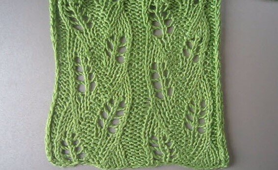 Нежные, ажурные листочки, которые вяжутся парой и имеют наклон в разные стороны. В вязании образуют широкую вертикальную полосу. Подойдут, как самостоятельный узор или же, как отделка в любом изделии – топе, тунике, кофточке, джемпере, кардигане. Для образца использовалась пряжа в 100 гр. 230 метров; спицы 2,5 мм. Раппорт узора: 14 петель; 16 рядов. Схема вязания поворотными рядами: Набирается количество петель должно, кратно 14 + 3 петли для симметрии + 2 петли кромочные. Узор повторяется с 1-го по 16-й ряд. Схема вязания по кругу: Набирается количество петель должно, кратно 14. Узор повторяется с 1-го по 16-й ряд. Разные формы листочков со схемами и МК здесь.
