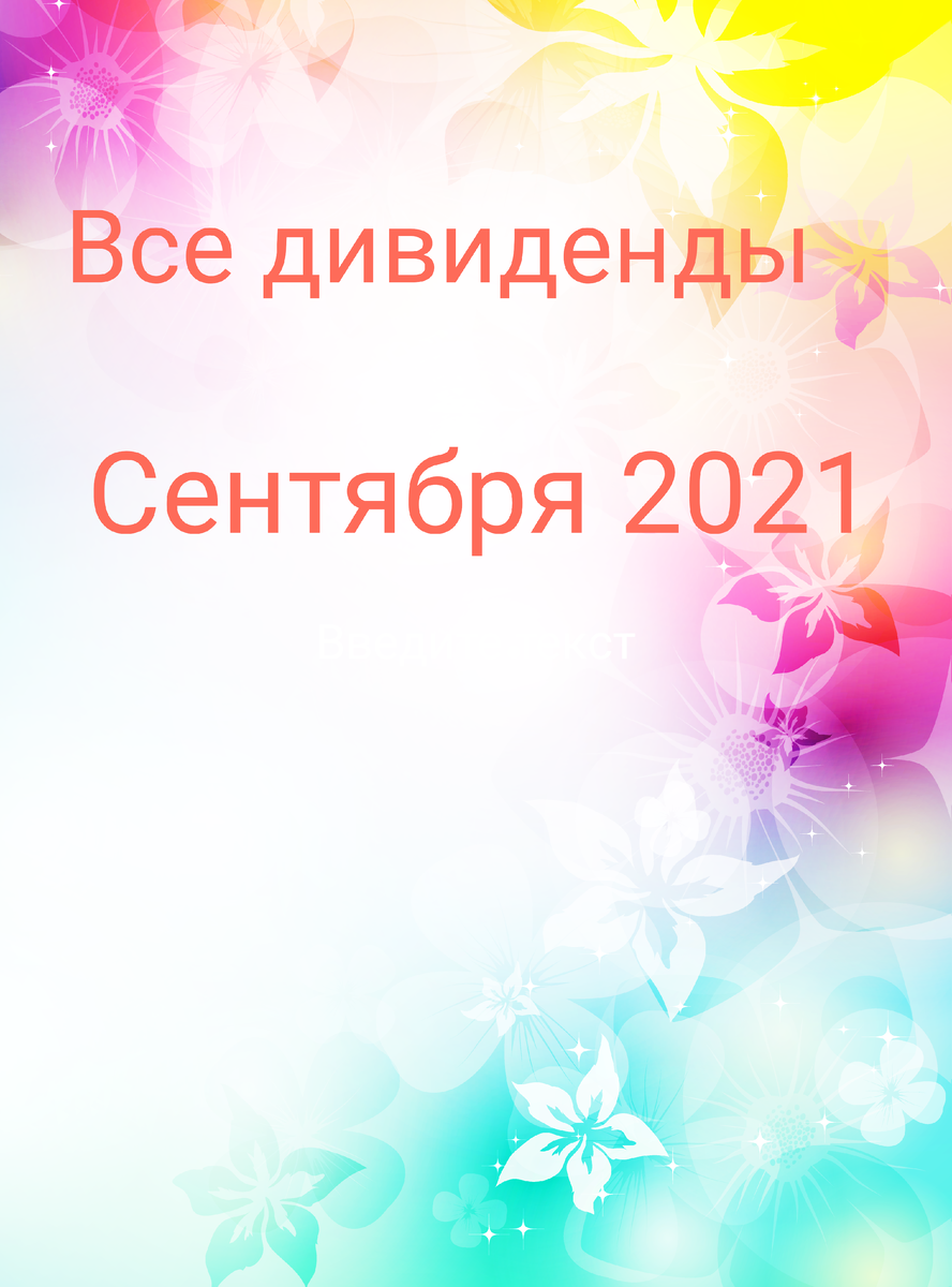Отличный месяц сентябрь - поток дивидендных выплат продолжается. Инфляция растёт, #дивиденды растут. Правда цены на #акции то же растут сумасшедшими темпами, но таковы сегодняшние реалии. Итак первая компания по размеру дивидендов в сентябре: компания #ТМК компания #ММК компания #нижнекамскнефтехим компания #РОСАГРО компания #РАСПАДСКАЯ компания #фосагро компания Группа Черкизово компания #КАЗАНЬОРГСИНТЕЗ компания #Полиметалл компания Белуга Групп компания Мать и дитя компания Русская Аквакультура