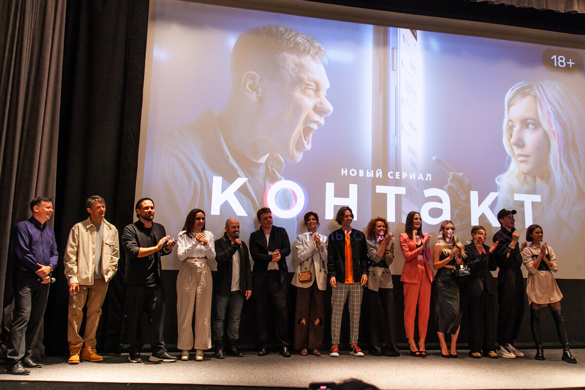 9 сентября на видеосервисе PREMIER выйдут сразу две серии драмы с Павлом Майковым и Ириной Паутовой в главных ролях 7 сентября в московском кинотеатре «Иллюзион» состоялась закрытая премьера сериала «Контакт» (с 9 сентября на видеосервисе PREMIER) – остросоциальной драмы о проблемах отцов и детей в эпоху соцсетей. Проект представил Евгений Стычкин, для которого сериал Good Story Media и продюсерской компании «Среда» стал режиссёрским дебютом. Вместе с ним зрителей с сериалом знакомили продюсеры Антон Щукин, Иван Самохвалов и креативный продюсер Максим Паршин. В числе гостей была актриса Равшана Куркова, для которой вчерашняя премьера стала первым публичным выходом после новости о материнстве. Также показ посетила Виктория Боня, пришедшая в «Иллюзион» вместе с 19-летней подругой Софьей Плотниковой, дочкой депутата госдумы Перми. Павел Майков пришел на премьеру с супругой, которая вместе с ним сыграла в сериале — она получила эпизодическую роль в одной из серий «Контакта». Поздравить Евг