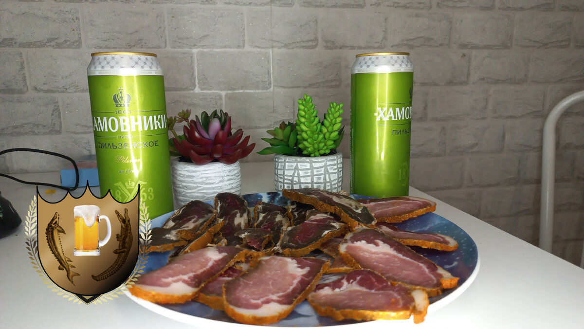 Моё почтение любителям пенного! Давненько мы не виделись с корешем моим драгоценным Коляном! И решили мы давеча вечерком исправить это прискорбное недоразумение, ведь повод был самый, что ни на есть важный. Как раз поспела свежая партия вяленого мяска! В этот раз созрели говядина и свинина. И решили мы это дело потребить под хорошее пивко нажористое с горчинкой приятной! Вообще план был найти, по паре банок крафта на пробу, а дальше уже мясо под пилснер, но как правило, планы посыпались, ибо оббежав в округе около 5 пивных точек, ничего стоящего мы не нашли, а то что нашли в 100й раз брать "на пробу" смысла не было. Посему решили перейти сразу к бастурме и пилсу. Взяли в равных пропорция отечественного Гролша и Пильзенских Хамовников и пошли, так сказать, снимать пробу! И если Гролш был как всегда хорош, то к Хамовникам возникли вопросы. Обычно я всегда беру в стекле, но в этот раз стекла не было и мы решили взять баночное. Какая к лешему разница? - подумали мы. Пиво одно и тоже, ва