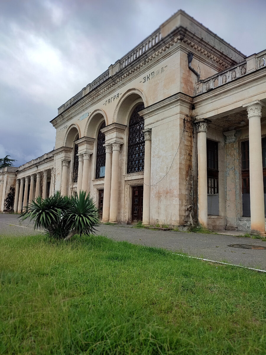 С этой заброшкой мы познакомились в последний день нашего пребывания в Абхазии. Уезжали домой мы на поезде Санкт-Петербург-Сухум, который отправлялся из Новой Гагры. Поездка на такси от Комсомольского парка до вокзала стоила 350 рублей. И вот мы на месте. Сразу же поражает масштаб, былая красота и сегодняшнее состояние здания. Очередной заброшенный объект, который так и не восстановили после военных действий 1992-1993 года. Здание вокзала возведено по проекту архитектора Зои Поченцовой-Орлинской. Кстати если вы из Ростова-на-Дону, то возможно будет интересно. После Великой Отечественной войны здание Лендворца восстанавливали по проектам этого же архитектора. Ну, а мы возвращаемся в Гагру. В феврале 1951 года состоялось открытие нового железнодорожного вокзала в Новой Гагре. Он замечательно вписался в окружающее пространство и до сих пор удивляет своим великолепием и грациозностью. В советское время здесь проходило большое количество грузовых и пассажирских поездов. На 1975 год с жд