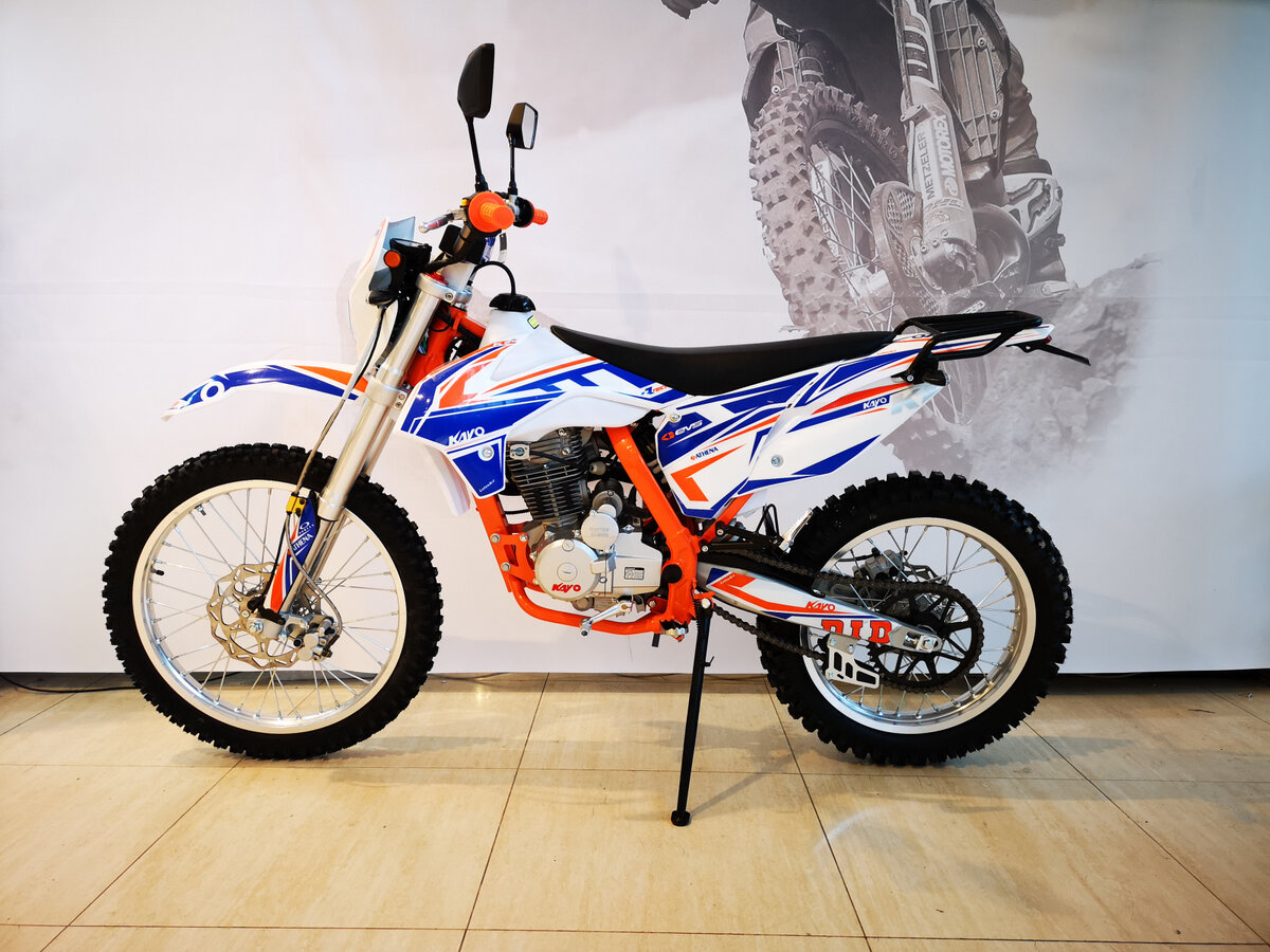 Кроссовый мотоцикл Kayo – это доступный и надежный байк. Данная модель при всей своей агрессивности остается безопасным и простым в управлении. Поэтому подойдет не только опытным байкерам, выполняющие головокружительные трюки. А так же начинающий водитель смело освоит навыки управления. Ценовой сегмент рассчитан на разную категорию покупателей. Например для любителей доступна техника по более низким ценам. Представленные модели KAYO отличаются друг от друга по объему и мощности двигателя, системы охлаждения, конструкции и наличие фар. Объединяет серию китайской мототехники КПП, тормозная система, сцепление, подвеска и конструкция рамы. ВАЖНО!! Для асфальтированных трасс, дорог общего назначения кроссовый мотоцикл не предназначен. Кроссовый мотоцикл не рассчитан на долгие поездки. Его можно положить в багажник машины и привезти на дикие природные просторы. Здесь можно вдоволь насладиться экстремальной ездой, потренироваться выполнять трюки.
