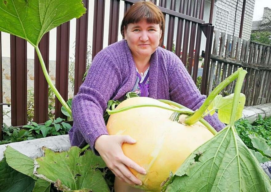 33-килограммовая тыква выросла на участке вилейчанки. Ирина этой весной впервые засеяла участок овощами. Порадовал урожай огурцов, а тыква вообще вымахала гигантских размеров. – Соседи через забор уже пошутили, мол, когда резать будешь, не забудь и нам кусок. Да тут всей Вилейке хватит! – рассказала Ирина Mlyn.by. Каких-то особенных удобрений для роста тыквы вилейчанка не добавляла, семена были и свои, и из магазина. – Здесь солнечная сторона и плодородная почва, вот и вымахала. Придется с огорода на тачке вывозить, – добавляет Ирина. В семье Балковских тыква – любимый овощ. У Ирины есть несколько оригинальных #рецептов. Вот один из них – тыквенный горшочек с мясом. В тыкве аккуратно срезается «шапка» и удаляется сердцевина с семечками. Для начинки отлично подойдет свинина или курица, смешанные с морковью, луком и специями, с добавлением риса или картофеля. Ими и наполняется горшок. Запекается тыква с мясом и овощами в печи примерно полтора часа. Чтобы сохранить форму горшочка и сочный