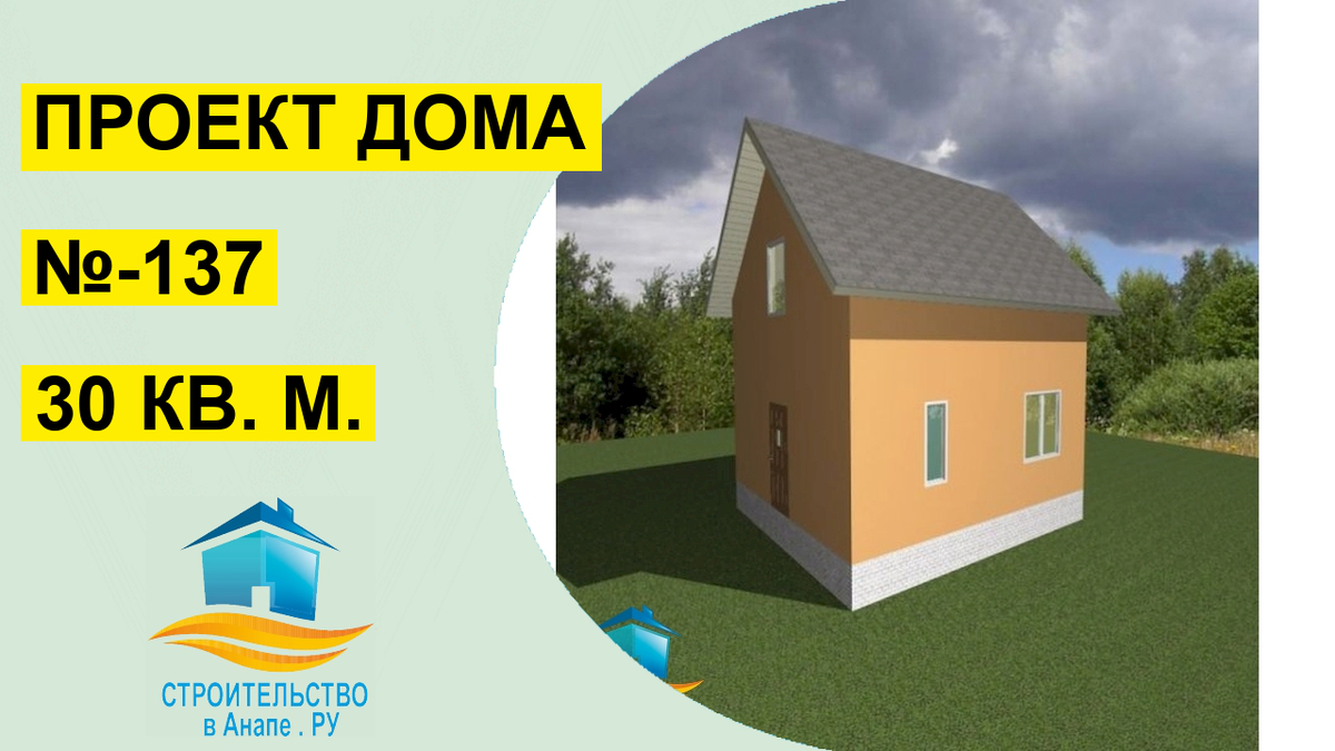 Проект одноэтажного дома 30 квадратных метров (№-137) на Черноморском побережье. Индивидуальный коттедж на берегу Чёрного моря - предел мечтаний для многих граждан нашей страны. Недостаток солнечной активности в центральной полосе России, тяжёлые условия проживания в сибирских регионах заставляют подумать о покупке жилья в южных районах. Первый шаг в реализации желаемого о своем коттедже - проект одноэтажного дома 30 квадратных метров (№-137). Наша организация занимается проектированием и строительством в Анапе. Архитекторы, проектировщики разработали десятки объектов разной планировки и площади. Вам требуется отличное от стандартного воплощение задачи? Задавайте задачу и мы отошлем проект, предварительные расчеты на указанную вами e-mail почту. Поверьте нашему опыту, способному сде