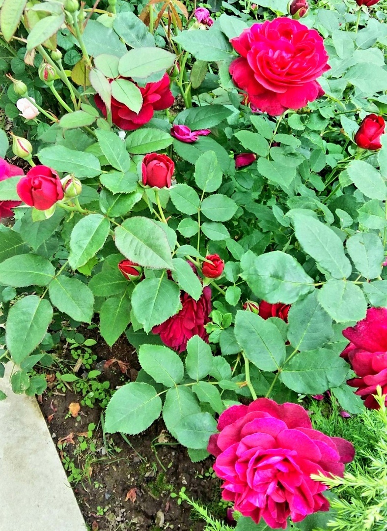 поговорим о розах смотрю мои коллеги снимают розы в своем саду а я что-то за ленилась и вот сегодня немножко выглянуло солнце чуть чуть чуть чуть потеплело два дня был холод очень сильный я решила выйти в свой сад и тоже показать вам цветения своих rose а вот сейчас я стою перед великолепным сортом достаточно редким на мой взгляд я мало у кого в сада встречался от этой розы эта роза барон эдмон крошит роза чайно-гибридная и вы знаете что меня удивило когда я сегодня открыла свой так сказать журнал где у меня описание роз и посмотрела написание та роза роста вы видно в 1968 году она просторы нашей страны видимо пришла совсем недавно и в общем-то не сильно распространена садах наших коллег что же хорошего в этой дороге друзья я с таким трудом приобрела и так сложно мне было найти ее не в каждом питомнике есть эта роза ну во первых посмотрите друзья как красив цветок а этой розы я вам уже сказала роза чайно-гибридная какой друзья цвет посмотрите как красив цветок а этой розы но не зна