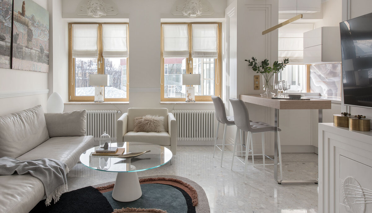 Максим и Евгения Константиновы, студия Konstantinovi design, завершили интерьер квартиры площадью 65 кв. метров в Центре Москвы. Пространство расположено в доме 1935-го года постройки. Заказчик обратился к дизайнерам с просьбой провести реновацию части квартиры, а также проследить за законностью всех перепланировок. Предыдущий проект, сделанный два года назад, имел нарушения. В итоге авторам пришлось пойти дальше и изменить облик всей квартиры. Несмотря на небольшую площадь, работа затянулась почти на год из-за внезапной пандемии. Основная сложность состояла в том, что дизайнеры не могли ломать стены и перегородки, также необходимо было вписать в новый интерьер часть имеющейся мебели. Вдохновением проекту послужила сама Москва, ее архитектура и станции столичного метрополитена. За простым и легким интерьером при этом скрывается множество секретов и технически продуманных решений. Кухню заказчика дополнили необходимыми модулями, чтобы развернуть раковину к окну. Дизайнеры спроектировали