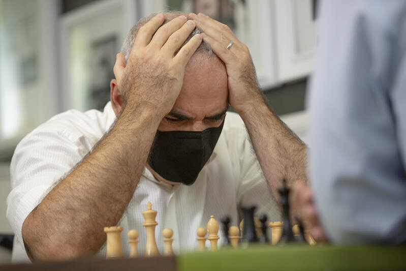 Сентябрь выдается очень насыщенным на шахматные события. Сразу три турнира идут одновременно - онлайн-Олимпиада, турнир по шахматам Фишера в Сент-Луисе и Norway Chess в Ставангере. Каждый турнир интересен и мы постараемся выделить самые яркие моменты. Гарри Каспаров Гарри Кимович участвует на турнире Chess9LX, в котором шахматисты сражаются в шахматах Фишера. В первый игровой день было проведено три тура. Каспаров завершил две партии вничью и одну проиграл. Стоит отметить, что шансы на победу у 13-го чемпиона мира все-таки были, особенно в партии против Уэсли Со. Вот так Гарри Кимович мог выиграть фигуру. Однако вместо e6 последовал ход Лh1. Вскоре позиция выровнялась и шахматисты согласились на ничью. Партия полностью: Также стоит отметить провал Хикару Накамуры, который проиграл все три партии. В одной из них Хикару сдался уже на 16-м ходу, поскольку зевнул красивый удар 15..Фxe5 от Сэма Шенкланда. Бить ферзя нельзя, поскольку черные ставят форсированный мат в три хода: Турнирная таб