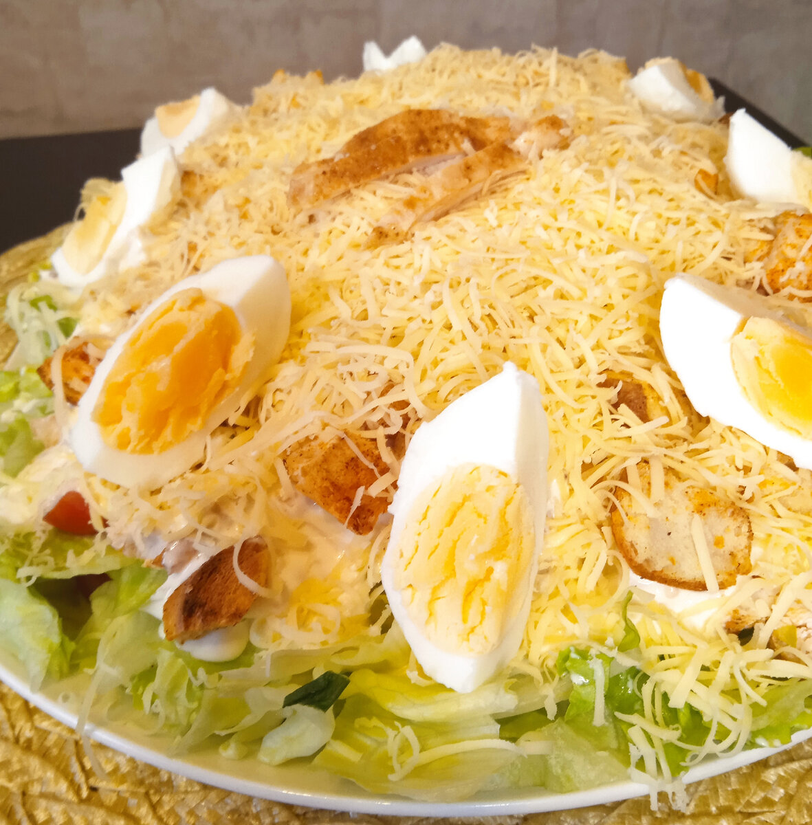 "Цезарь" очень популярный во всем мире салат. Это легкое, вкусное,яркое блюдо с гармоничным вкусом, не зря оно нравится многим. Редко встретишь ресторан, в меню которого нет "Цезаря".Но не менее вкусный салат без труда можно приготовить и дома. А я покажу вам как я это делаю. Для начала подготовим курицу: Вместо соли и для пикантности добавим несколько штучек очищенной кильки или хамсы(мелко порубить). В классическом соусе идут анчоусы Все компоненты аккуратно перемешать. Добавить немного воды, ещё раз перемешать. Соус должен быть по консистенции как жидкая сметана. Попробовать на вкус, если надо посолить. Соус готов. Ещё для салата нужно приготовить сухарики. Можно, конечно, купить в магазине, но свои будут вкуснее ,и готовить их не сложно: Основу "Цезаря" составляют салатные листья. В классическом варианте это салат ромэн(Романо), но у нас его встретишь не во всех магазинах, поэтому я использую салат "Айсберг",более распространëнный на наших прилавках. Я знаю некоторые готовят