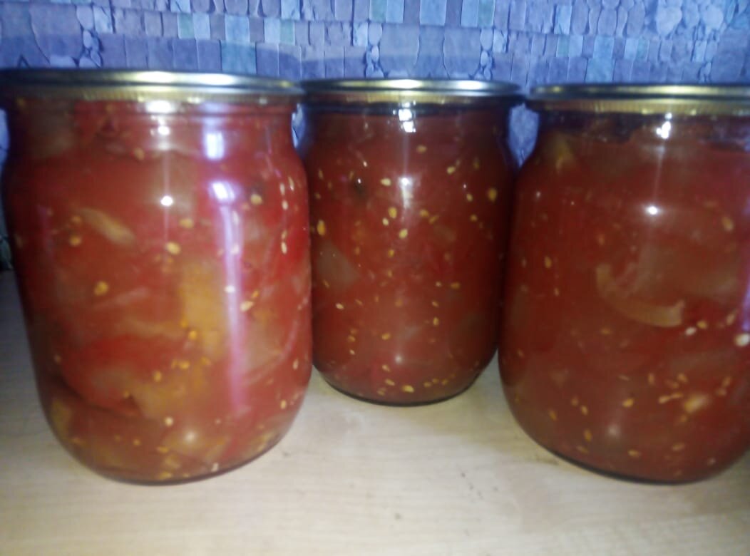Рецепт простой. Но больше всего нравится вкус, слегка сладко-острый. С макаронами или с пюрешкой, очень хорошо зайдет. Овощи можно резать так, как кому нравится. Я беру 3 кг. помидор( режу дольками), 2 кг. кабачков очищенных ( кубиками небольшими), 1 кг. лука( полукольцами), болгарский перец 0,5 кг.( нарезаю полосками не длинными).