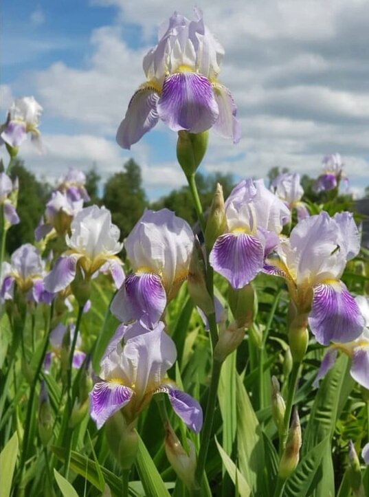Ирисы люблю, но к меня в цветнике только один самый простой сорт ириса - фиолетовый, по-моему он есть у всех, особенно на старых дачах. Даже не знаю как этот сорт называется. Вчера мне подарили целый куст ириса с нежными бело-фиолетовыми оттенками. Куст большой. Разделю корневища на звенья. Посажу в ряд или небольшой группой перед скамейкой на заднем дворе. Будем выходить вечером и отдыхать перед бутонами, которые напоминают зефирки или пирожное безе. Вплотную подходит время ночных заморозкой. Сегодня обрезала на черенки пеларгонию. Кусты в цветнике разрослить и стали огромными. Ножницы кое-как срезали боковые стебли. Укоренять буду двумя способами. Первый - сразу в землю с корневином (черенки обмакиваю), второй поставлю в воду, чтобы появились корешки, тоже добавлю корневина. Все черенки, посаженные в землю и поставленные в воду, оставлю на веранде в прохладе, чтобы приживание и адаптация к домашнему теплу прошла легче. А потом в дом занесу. Оставила по 3 узелка, лишние листья обр