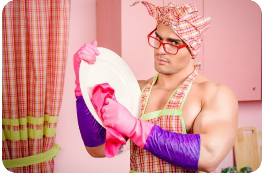 Нашел в инете тему, девушка спрашивает, почему мужчины не моют посуду и не убираются дома. Может и местных девушек это интересует? Гендерное разделение ролей сложилось исторически, от природы. Мужчина сначала отобьет территорию и самку от соперников, подберет пещеру или построит жилище, заводит с самкой потомство. Потом ходит на охоту и рыбалку, добывает пищу, жена готовит и кормит детей, сначала грудью, потому, что у неё она есть:). Муж еще пашет в поле, жена сеет хлеб, потому что он сильнее, а она аккуратней. Каждый делает, то что ему по силам, и к чему больше способностей от природы. Мужья ходят на войну, отбивают атаки врагов. А жены сидят дома, защищают и кормят детей. Потом на заводе точат снаряды для бойцов, которые своей Жизнью защищают Родину! В наше время немного изменились роли, но принцип тот же. У женщины есть грудь, она кормит детей, и готовит на всю семью. Муж строит жилье, добывает ресурсы, носит тяжести и защищает от соперников. Вы же женщины не хотите таскать тяжёлы