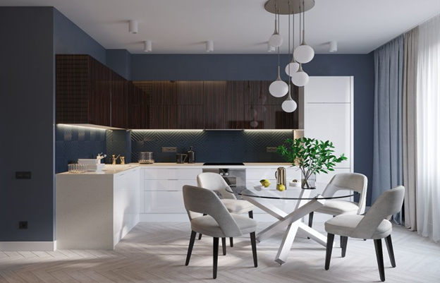Помимо этого, нужно сделать подсветку рабочей зоны и повесить пару светильников у обеденного стола, так даже маленькая площадь будет казаться светлее и уютнее.