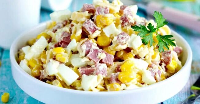 Приветствую всех, дорогие друзья ! Хочу рассказать вам о приготовлении салатов, подходящих на каждый день.Конечно в этом списке салаты с майонезом, который не особо хорошо влияет на организм ибо не натуральный, но многие сейчас вовсе не готовят без него блюда и считают очень вкусным и обязательным ингредиентом абсолютно ко всему. В самом начале салат пришёл к нам из древнего Рима.Он состоял из : петрушки, лука,риса, перца, соли и уксуса, но как только разные народы мира узнали о нём, то начали пробовать изменять добавки в нём, появлялись всё новые и вкусные рецепты салата.На сегодняшний день существует различное множество салатов.На любой вкус и цвет.Есть из фруктов, из овощей, только из зелени или мясные. Перейдём к приготовлению моих любимых салатов ! 1.Многие называют его ёжик, но я знаю точно, он хорошо подойдёт для любого праздника. Понадобятся такие ингредиенты : Приготовление : 1.Колбасу и яйца нарезать кубиками.На тёрке натереть сыр.Соединить колбасу, сыр, яйца и кукурузу. 2.