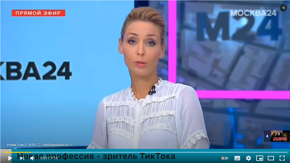 Реклама вакансии TikTok просмотрщик - это обман. В рекламе используется кадры из трансляции канала "Москва 24" с ведущей Светланой Ключниковой, кадры настоящие и Ключникова настоящая, преступно использованные злодеем. А дальше сплошной обман. Переходим по ссылке, которая отправляет сразу на убогий телеграмм бот. Вот он. Который сразу же предлагает нам за просмотр 10 руб, за коммент ажно 20 руб. Начинаем ковать железо пока горячо. Итак я поработал две минуты. за это время я просмотрел несколько роликов , как новому пользователю мне сразу зачислили бонус 100 руб., а дальше предложение подписать на канал редиски за бонус 500 руб. Вот он. Понятно ради чего это все затеивалось? Чтобы вы подписались на канал очередного миллиардера, который спешит поделиться с вами секретом как заработать миллиард и заодно будет "разыгрывать " свои миллионы среди благодарных подписчиков. Надо ли говорить, что мне никто не выплатил заработанные кровью и потом, за две минуты 660 руб. Психика
