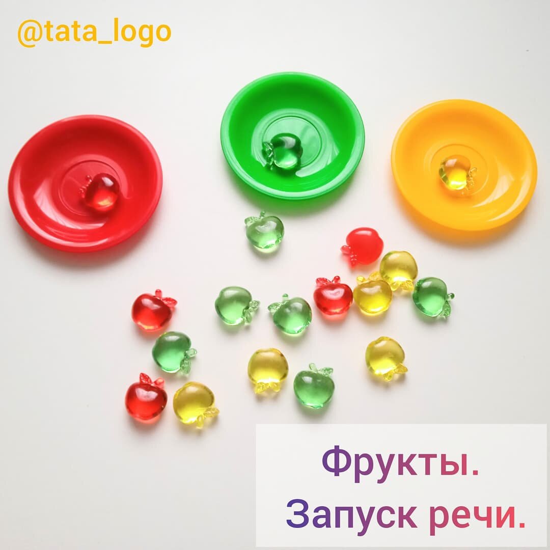 Речевые задания для самых маленьких 2+ ✅Знакомим детей с названиями фруктов ✅Соотносим фрукт с картинкой. Отрабатываем понятие "одинаковые" Инструкция:"Дай такой же" "Одинаковые" ✅Учим размер Инструкуия:"Покажи большое яблоко, маленькое яблочко"и тд ✅Учим цвета. Сортировка яблок. "Дай красное, дай желтое" И тд ✅Один-много. "Покажи одно яблоко, покажи, где много" ✅Делаем пирожки или вареники с фруктовой начинкой (можно сделать из солёного теста, а можно и по-настоящему испечь). Сопровождаем действия песенкой: Мы с тобою вместе замесим тесто Для блинов и пирогов, для ватрушек, пончиков Яйца разбиваем (щелкаем язычком "лошадка") Молоко вливаем ("Буль, буль, буль") Муку мы насыпаем (шшшш) И миксером взбиваем (губами делаем болтушку) Месим, месим тесто ааааа Замесили наконец и я помощник-молодец! Слова для запуска:ЖМИ, РВИ, КАТАЙ, ЛЕПИ, МУКА СИТО" ✅Кормим пирожками или вареникаии кукол и животных."На ляля, ешь" "На, зая, ешь" И тд ✅Песенка "Варим компот" (Можно с металлофоном, к