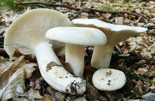 Шляпка ∅ 5—20 см, сначала плоско-выпуклая, затем воронковидная с завёрнутым внутрь опушённым краем, плотная. Кожица слизистая, мокрая, молочно-белого или слегка желтоватого цвета с неясными водянистыми концентрическими зонами, часто — с прилипшими частичками почвы и опада. Ножка 3—7 см в высоту, ∅ 2—5 см, цилиндрическая, гладкая, белого или желтоватого цвета, иногда с жёлтыми пятнами или ямками, полая. Мякоть ломкая, плотная, белая, с очень характерным запахом, напоминающим запах фруктов. Млечный сок обильный, едкий, белого цвета, на воздухе становится серно-жёлтым. Пластинки у груздя довольно частые, широкие, слабо нисходящие по ножке, белые с желтоватым оттенком.У старых груздей ножка становится полой, пластинки желтеют. Цвет пластинок может варьировать от желтоватого до кремового. На шляпке могут быть бурые пятна. Грузди очень сложно найти. Они прячутся под листьями, но всегда растут большими группами. Поэтому грибники, которым посчастливится обнаружить их, никогда не уходят с пусто