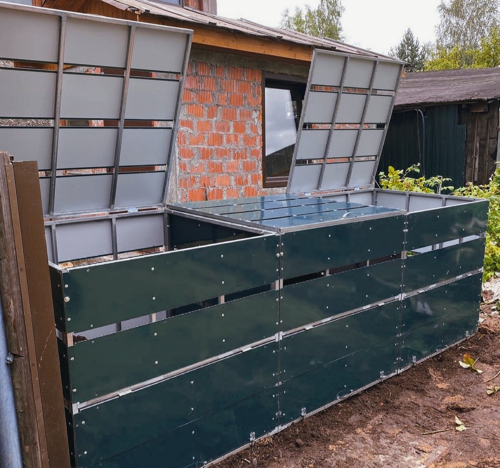 Сегодня поговорим про компостер. Компост-черное золото для садоводов, незаменимое удобрение для всех культур в любое время. Имея на участке компостер, мы получаем сразу решение двух проблем:утилизация растительных отходов и бесплатное удобрение посадок. Следующий логический как сделать компостер? Его можно сделать в виде кучи. Для этого понадобится только вырыть яму. Либо же в виде коробки с дверцей, что будет более эстетичнее и красивее. Каркас можно сделать из оцинкованной , благодаря чему она будет долговечной. Сверху я советую сделать облицовку из оцинкованных металлических листов, что будет функционально и современно. Пример такого компоста вы можете увидеть на картинке.
