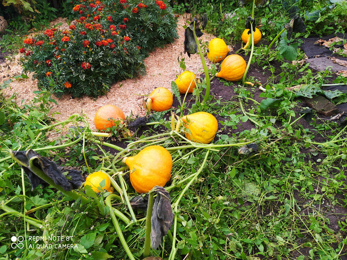 Добрый день, дорогие огородники! Рада приветствовать вас на своем канале. Я не люблю тыквы большого веса. Мне проще разделать и переработать тыковку в два килограмма. Поэтому и семена беру с миниатюрными плодами. Любые эксперименты, с положительным итогом они или с отрицательным, приводят к полезным выводам. Благодаря им мы узнаем, как лучше ухаживать за овощами, а как поступать нельзя. Так, например, с тыквой в этом году и произошло! По началу я вообще смирилась с тем, что тыквы в этом году не видать! После высадки рассады в ОГ, её слегка побило легким заморозком. В июне ночи были холодные и кусты были на грани умирания! Бедняги все же выжили и двинулись в рост! Посеяла два семечка. Два куста росли на одной грядке, только урожай дали абсолютно разный. С одного корня сняла 9 плодов, с другого - 4шт. Все тыквы идеальные! Такие, как я люблю. Небольшие, одна к одной, красного цвета, аккуратные и удобные в переноске. Каждая около 2 кг. Снимаю вместе с плодоножкой, чтобы по-дольше хранили