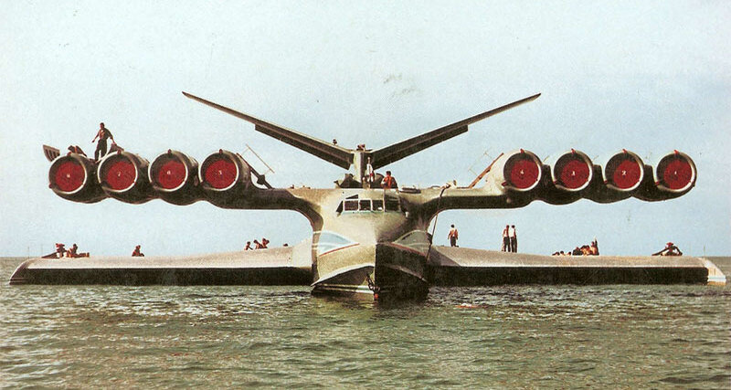 Первая публикация об экранопланах появилась в ТМ в 1972 году. Это было интервью с американцем Александром Липпишем - создателем лодок, скользящих по воздуху над водой. Как о диковинке узнал советский читатель об одноместном экраноплане Х-113 массой 345 кг. В конце беседы конструктор поделился своей мечтой построить 500-тонный лайнер, способный пересекать океаны со скоростью 200 км/ч и нести 240 т полезной нагрузки. В ту пору всем нам было невдомек, что подобные машины созданы уже почти 10 лет назад и не в секретных ангарах Локхида или Боинга, а на берегу Волги, под Горьким - ныне вновь Нижним Новгородом. И уникальные аппараты, и имя их главного конструктора до последнего года держались в тайне. На Западе же о корабле-макете знали не только спецслужбы, но и любой интересующийся подобной техникой. В одном из выпусков "Джейна"- популярного английского издания, посвященного военной технике всех стран - "Каспийский монстр" был охарактеризован так: "Гигантская советская экспериментальная крылатая машина, использующая влияние близости земли, с размахом крыльев 40 м, длиной более 90 м, проходит испытания на Каспийском море. Они начались в 1965 году. Аппарат, для которого оптимальная высота движения от 4 до 14 м над поверхностью, имеет потенциальную скорость 560 км/ч ..."