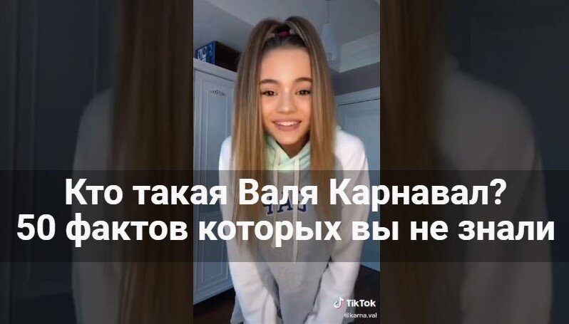 Чтобы узнать, кто такая Валя Карнавал, пользователь должен зайти хоть один раз в Тикток и пролистать рекомендации видео. В одном из них вы увидите девушку с необычной внешностью: милое лицо 13-летней девушки сочетается с фигурой фотомодели. Обычно она записывает короткие видео с танцами или с гримасами под популярную музыку.