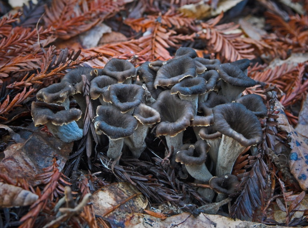 Черные лисички, пожалуй, один из самых ярких представителей грибного царства. Ее легко отличать от родственных видов благодаря темной окраске, чашевидной форме и тому, что экземпляры растут группами. Спутывать данный вид с другими довольно сложно, но всё же стоит знать некоторых возможных «двойников».