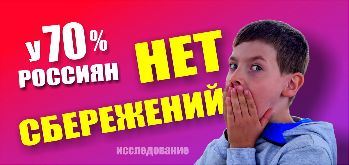 70% россиян не имеют сбережений Начну с необычного захода: в свежем исследовании НАФИ говорится, что свои деньги есть у 82% подростков. Вроде бы родители нам доверяют. Но не учат, как поступать с деньгами правильно. Всего 12% семей сказали, что регулярно обсуждают финансы с детьми. А тех, кто никогда этого не делает - в два раза больше (27%) . Лишь 15% взрослых обсуждают с детьми семейный бюджет. Конечно, мы же дети, что с нас взять? А нужно не «взять», а «дать»! Дать ключевой навык жизни: планирования и ведения бюджета. Иначе к самостоятельной жизни мы будем просто не готовы. В доказательство, вот вам результаты другого исследования: Вдумайтесь – 70% россиян не имеют сбережений. А если вы считаете, что оставшаяся треть, тоже неплохой показатель, то удивитесь: если в 2016 году «Сбережениями» считали сумму 200 000 рублей, то в 2019 году это всего 101 000 рублей. Теперь представьте, как мало тех, у кого есть действительно приличные сбережения. О чём говорить, если даже «сберегать» не уме