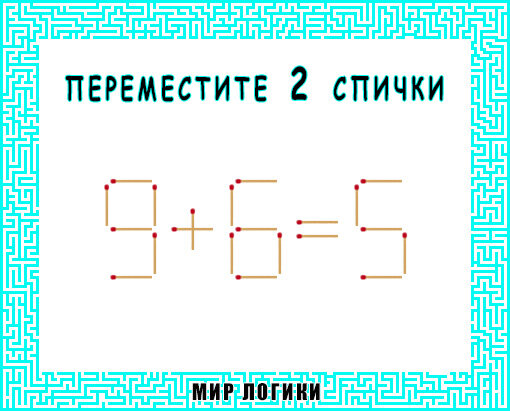 Добро пожаловать на канал Мир Логики! И снова #головоломки из спичек ! Условие везде одинаковое: переместите 2 спички, чтобы равенства стали верными. Головоломка №1 Головоломка №2 Головоломка №3 Головоломка №4 Справились? Я и не сомневалась! А давайте немного усложним задачу: найдите к каждой головоломке несколько решений. А может у вас получиться найти какое-нибудь оригинальное решение?! Делитесь ответами в комментариях! И не забывайте ставить лайк, мне безумно приятно) Спасибо за внимание! Всем отличного дня и хорошего настроения!!!