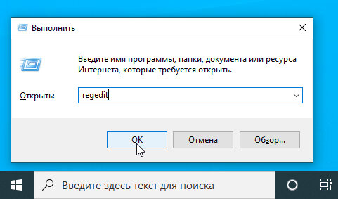 1. С помощью клавиатурной комбинации "Windows-R" откройте строку для ввода команд "Выполнить" и введите в нее команду regedit.